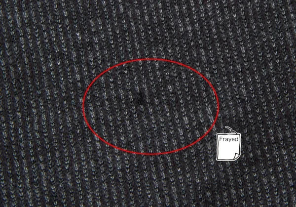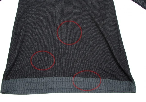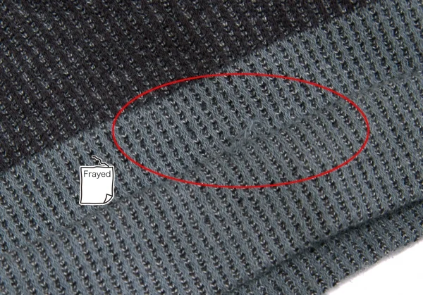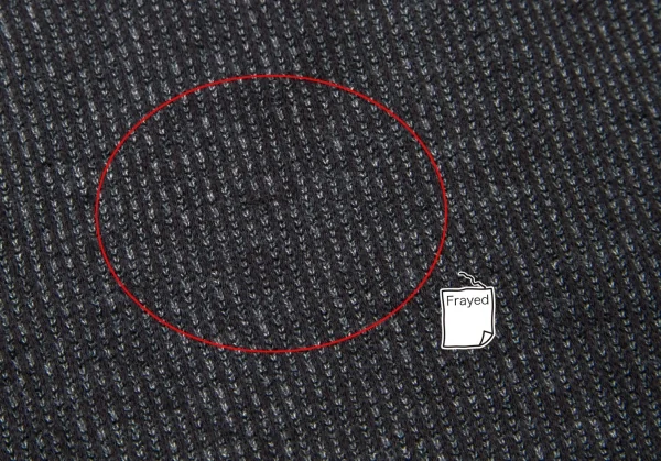 首回りに変色あり。前身頃に引っ掛けあり。(写真参照)その他に目立ったシミ、汚れはありません。