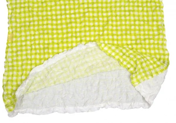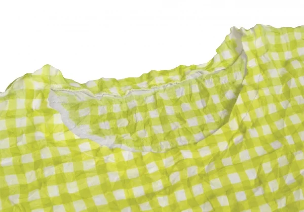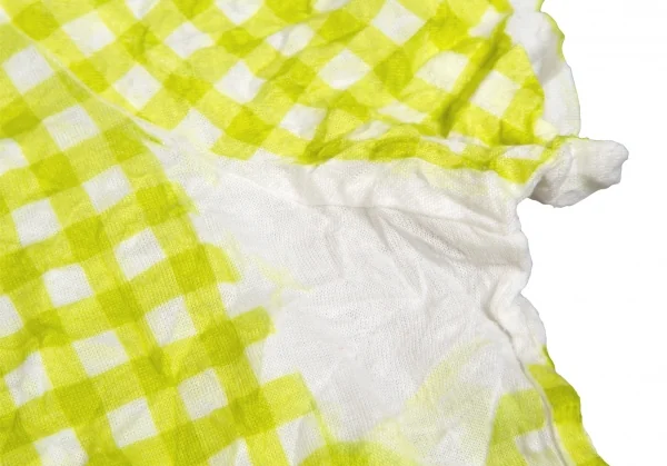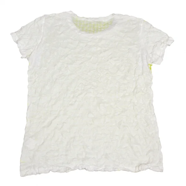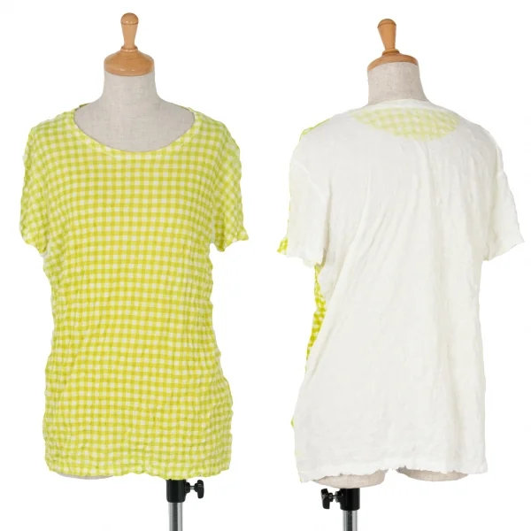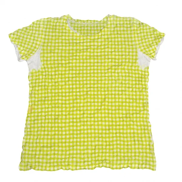 【SALE】イッセイミヤケ ミーISSEY MIYAKE me フロントギンガムチェックプリントシワ加工カットソー 黄緑白M位