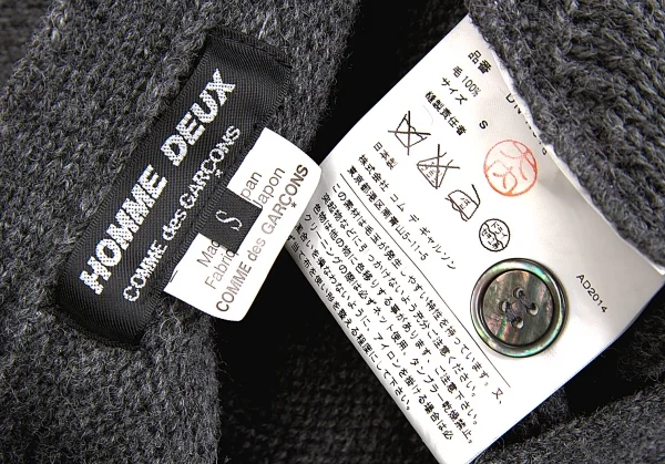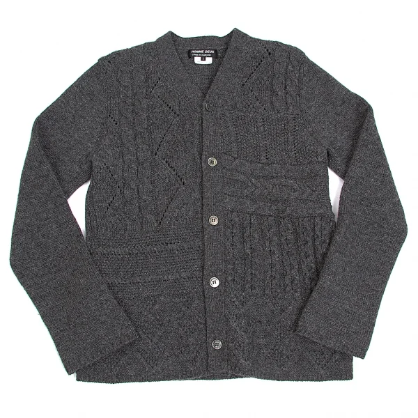 新品!【SALE】新品!コムデギャルソン オムドゥCOMME des GARCONS HOMME DEUX 縄柄カーディガン グレー S