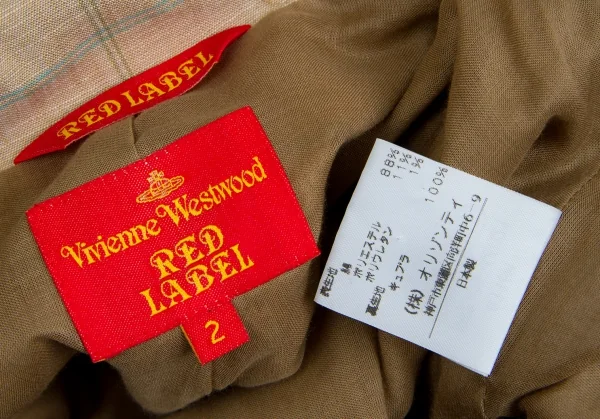 ヴィヴィアンウエストウッド レッドレーベルVivienne Westwood Red Label コットンチェック3Bジャケット ベージュ緑他2