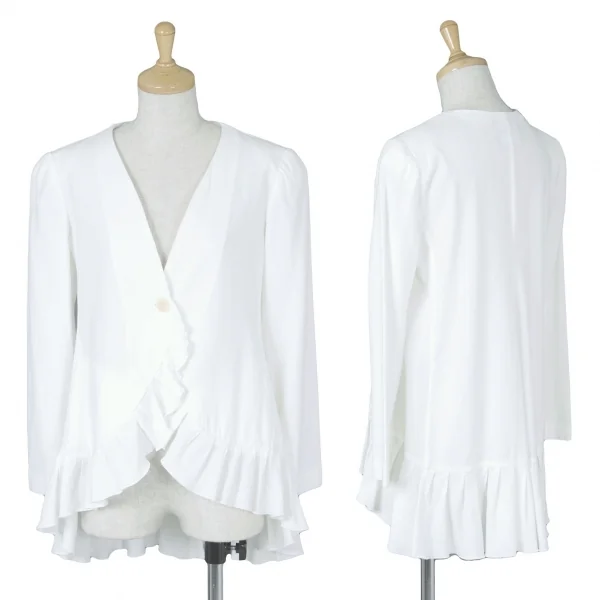 【SALE】エンポリオ アルマーニEMPORIO ARMANI フリルデザインノーカラーシャツジャケット 白40