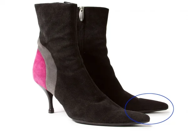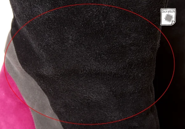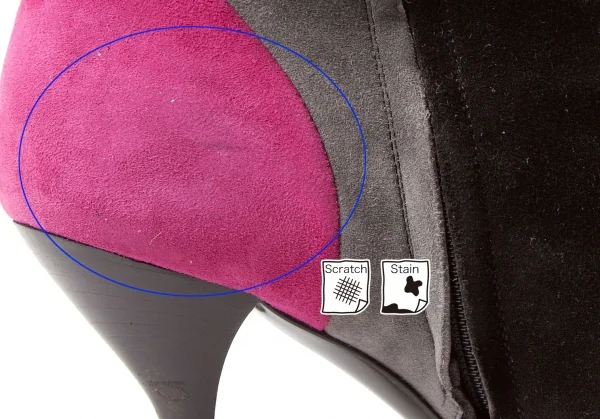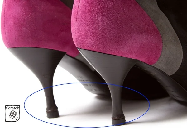 擦れ毛羽立ち、擦れ汚れ、ヒールに傷あり(写真参照)。その他にソールの減りも少なく目立った汚れ、シミ、ダメージ等なくいい状態です。