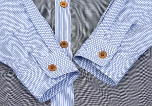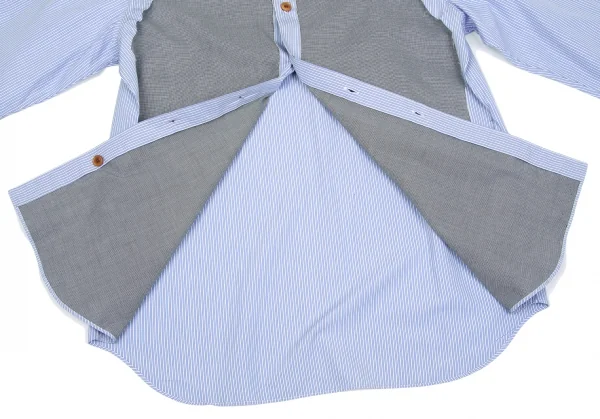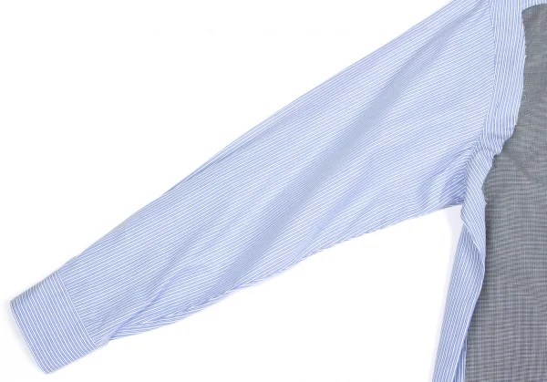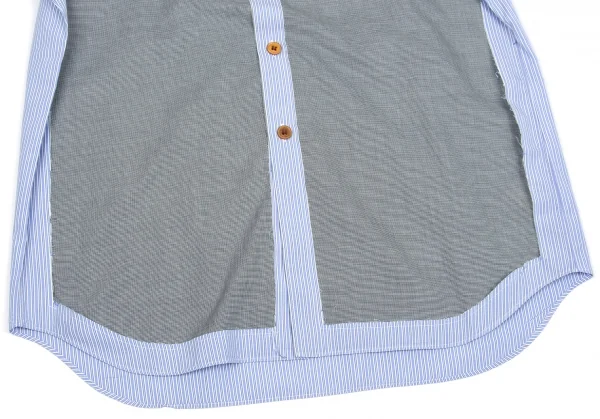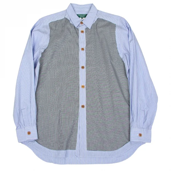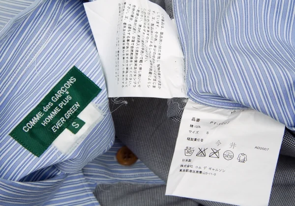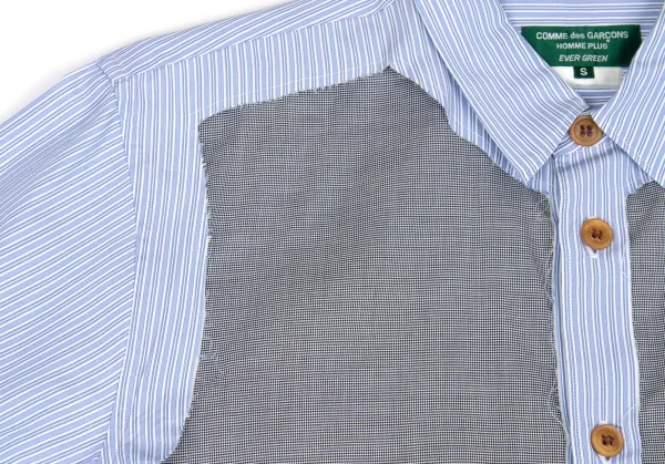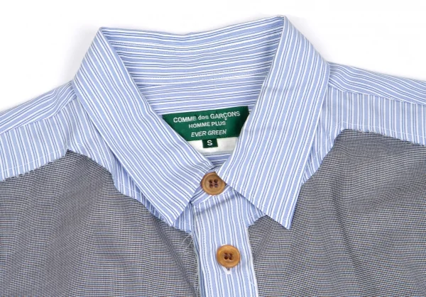 コムデギャルソン オムプリュス エバーグリーンCOMME des GARCONS HOMME PLUS EVER GREEN フロント裁ち切替ストライプシャツ ブルー黒白S