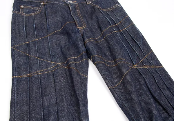【SALE】ジャンポールゴルチエJean Paul GAULTIER PARIS プリーツデザインデニムパンツ 青38