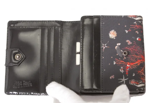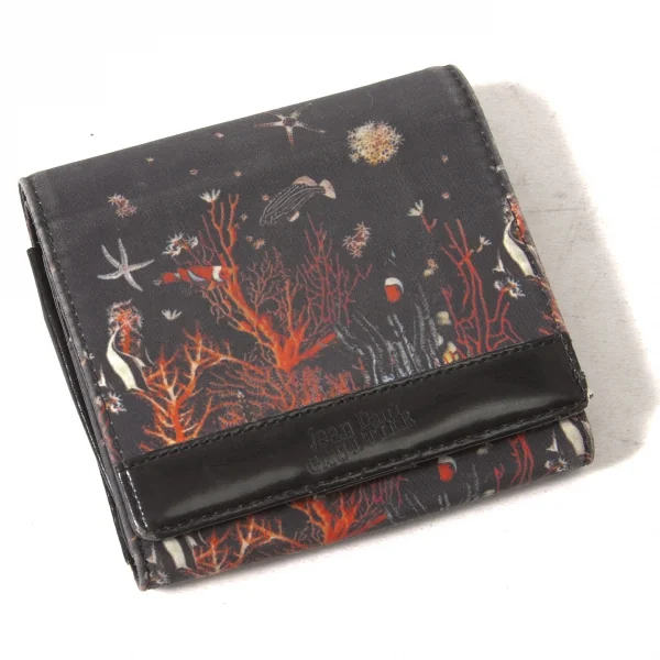 ジャンポールゴルチエJean Paul GAULTIER トロピカルフィッシュプリントデザイン二つ折り財布 黒赤他