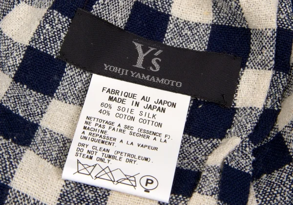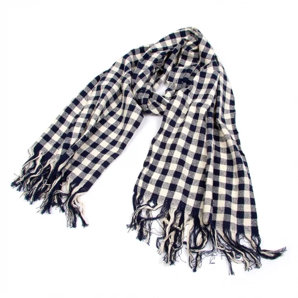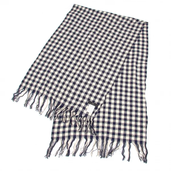【SALE】ワイズY's シルクコットンギンガムチェックマフラー オフ白紺