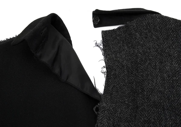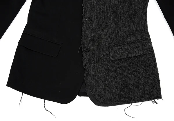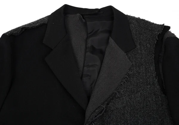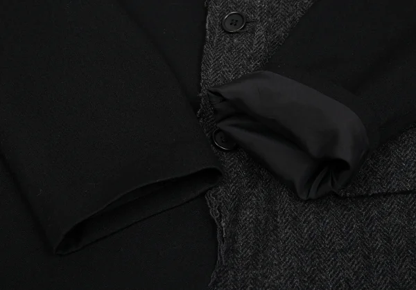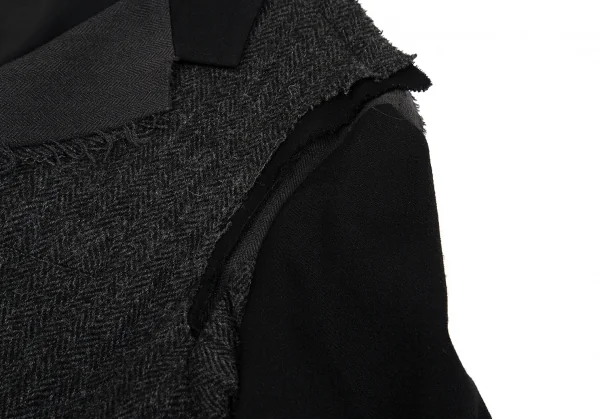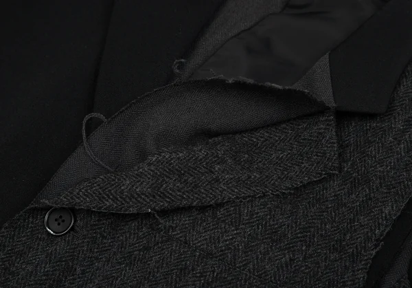 【SALE】ヨウジヤマモト プールオムYohji Yamamoto POUR HOMME ツイード切替ウールギャバジャケット 黒チャコール3