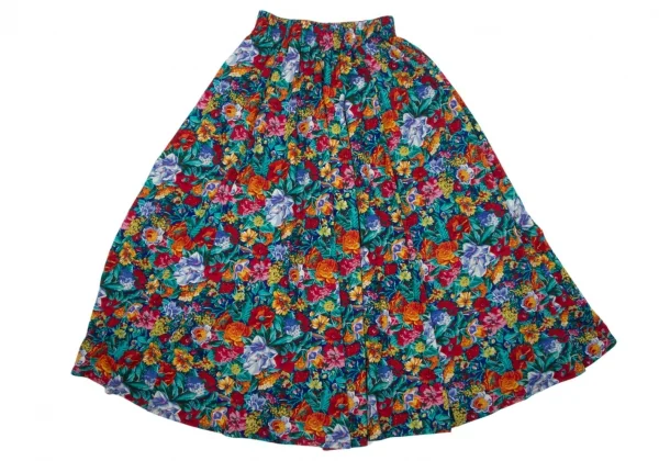 ケンゾーKENZO 花柄ウールスカート 赤青マルチ2M