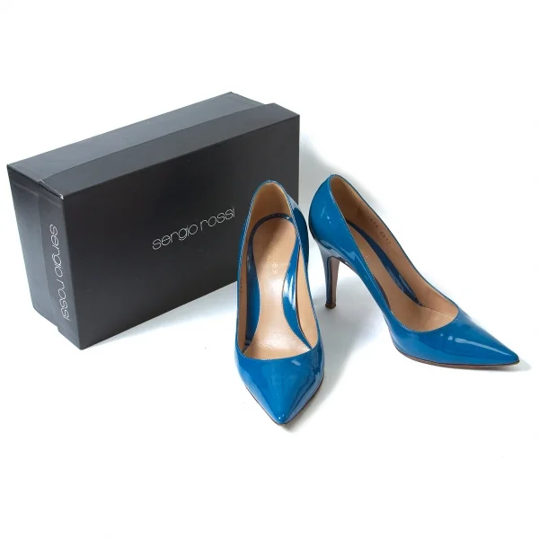 セルジオロッシsergio rossi エナメルレザーパンプス 36.5(23.5位) ブルー36.5(23.5位)