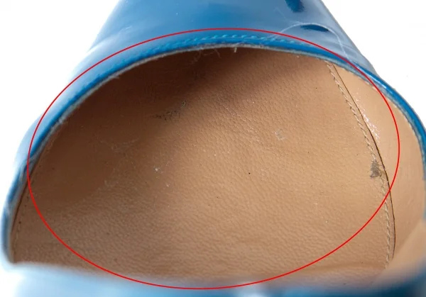ソールにスレ、左足踵小傷、中敷きに薄汚れがあります(画像参照)。その他目立った傷等なく、いい状態です。