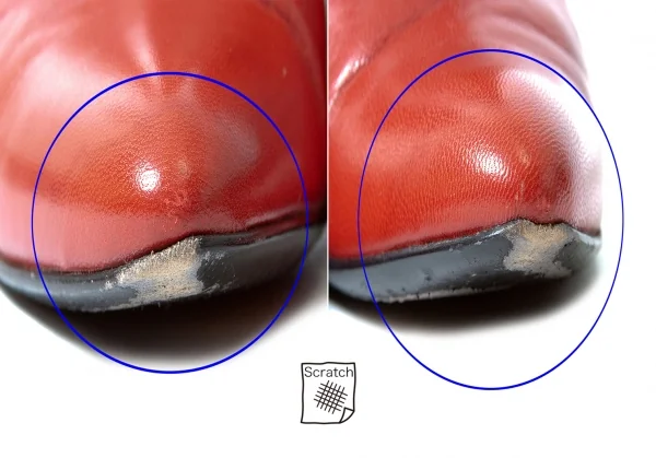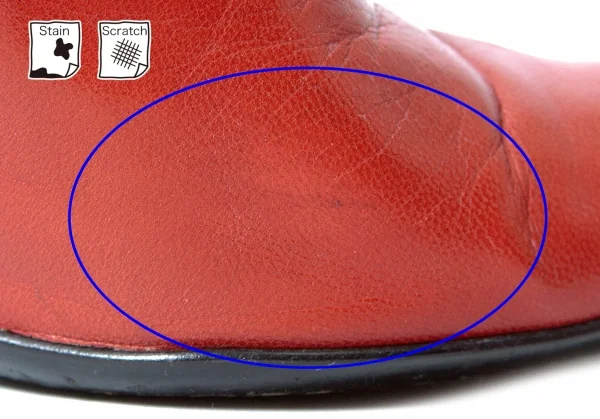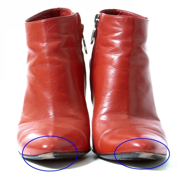 つま先・ソールにダメージ、左足再度内側に汚れ、内くるぶしにシワがあります(画像参照)。