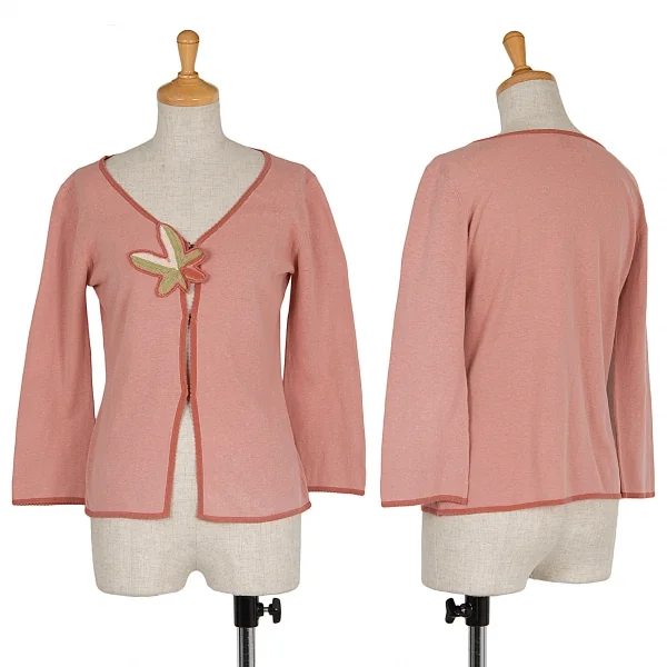 【SALE】ホコモモラJocomomola フラワーモチーフ貼り付けコットンカーディガン ピンク40