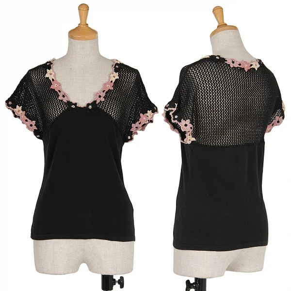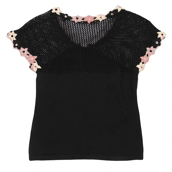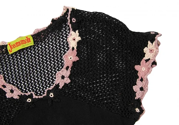 【SALE】ホコモモラJocomomola フラワーモチーフローゲージニット切り替えトップス 黒40