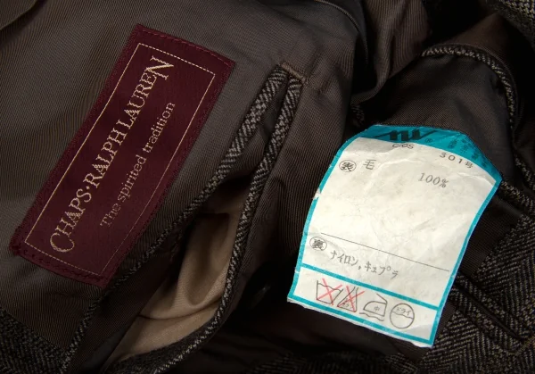 【最終値下げ】チャップスラルフローレンCHAPS RALPH LAUREN ウールヘリンボーンノッチドラペルジャケット 茶 モカM位