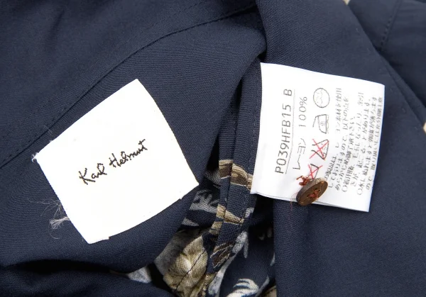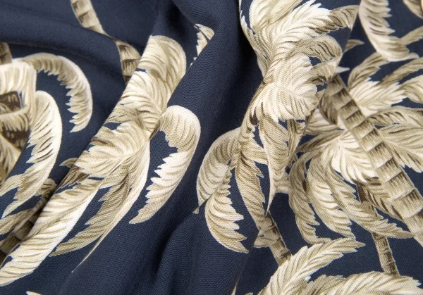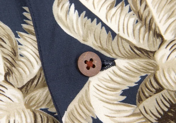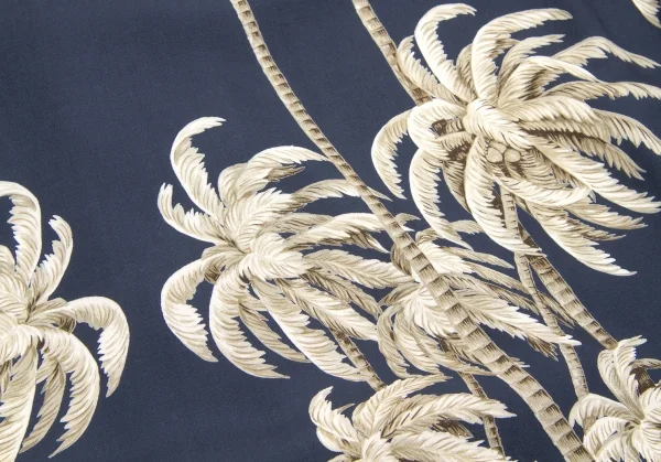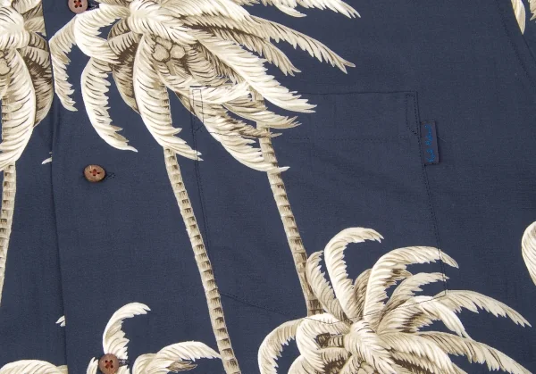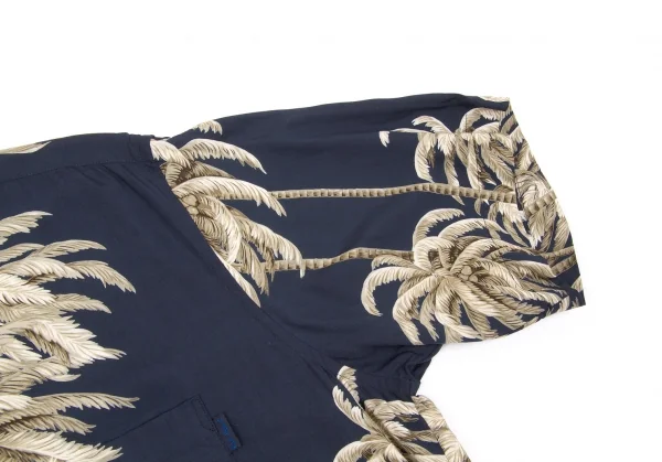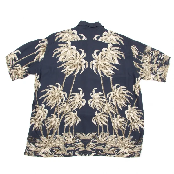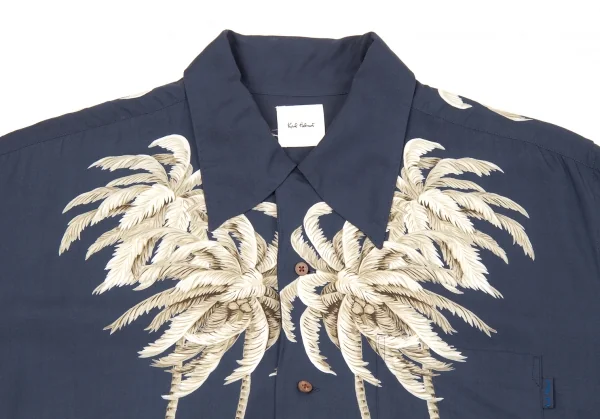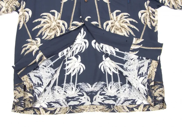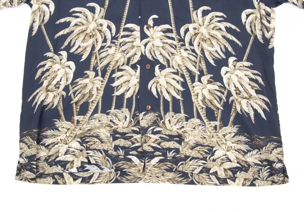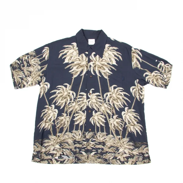 カールヘルムKarl Helmut レーヨンヤシの木プリントアロハシャツ 紺カーキM位