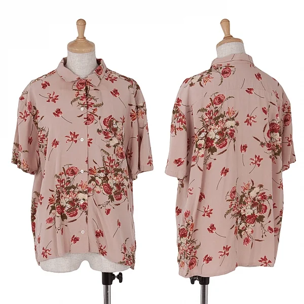 インゲボルグINGEBORG レーヨンフラワープリントアロハシャツ ピンク赤他M位