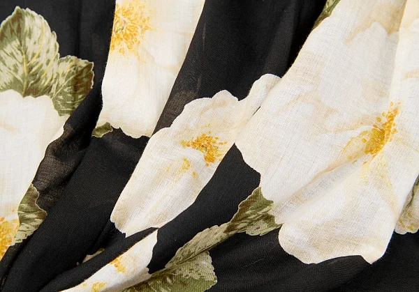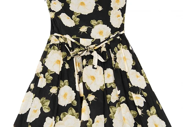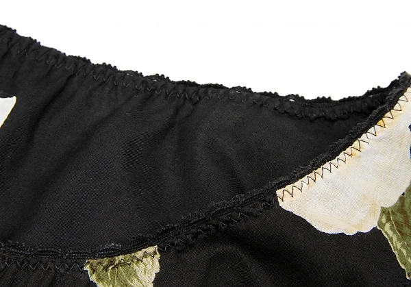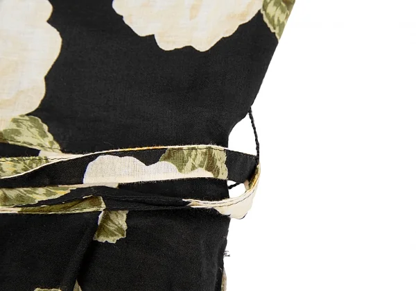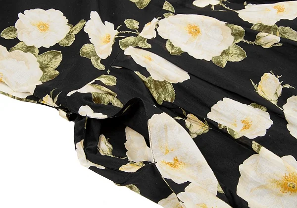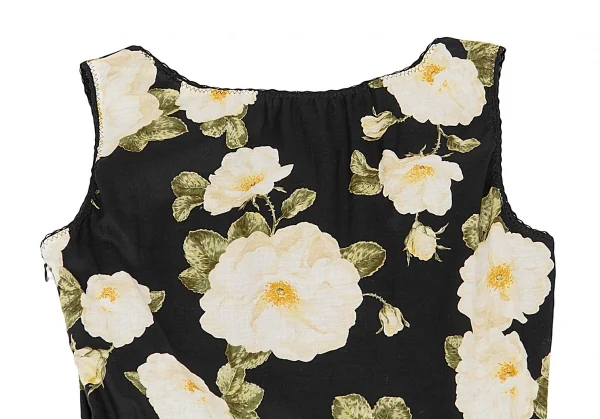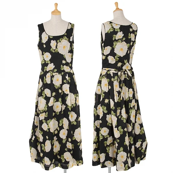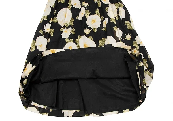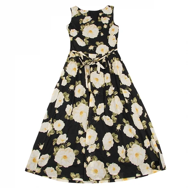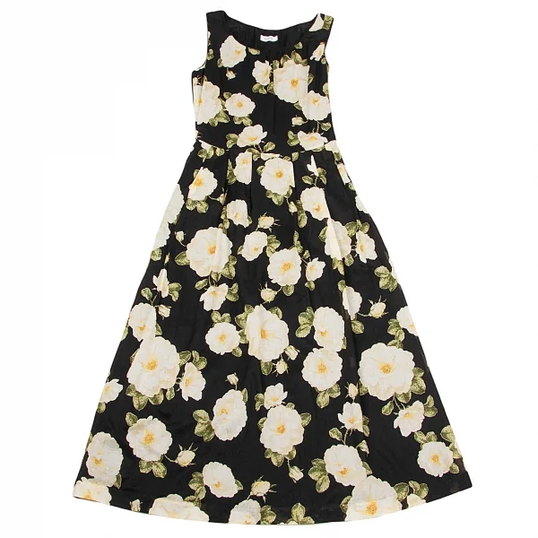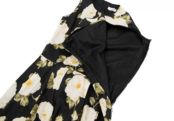 インゲボルグINGEBORG フラワープリント切替デザインワンピース 黒オフ白他S