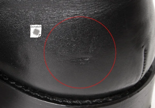 両足つま先・右足かかとに傷があります(画像参照)。その他ソールの減りも少なく、目立ったシミ、汚れ、キズ等なくいい状態です。
