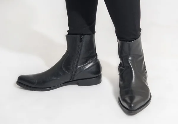 【SALE】ヨウジヤマモト ファムYohji Yamamoto FEMME 切替レザーポインテッドトゥブーツ 黒4(25位)