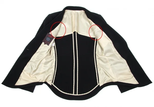 ジャケット袖口、襟元薄汚れ、裏地にほつれが有ります。パンツに糸引きが有ります。(写真参照)クリーニング済み