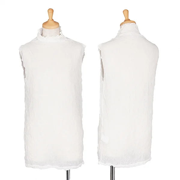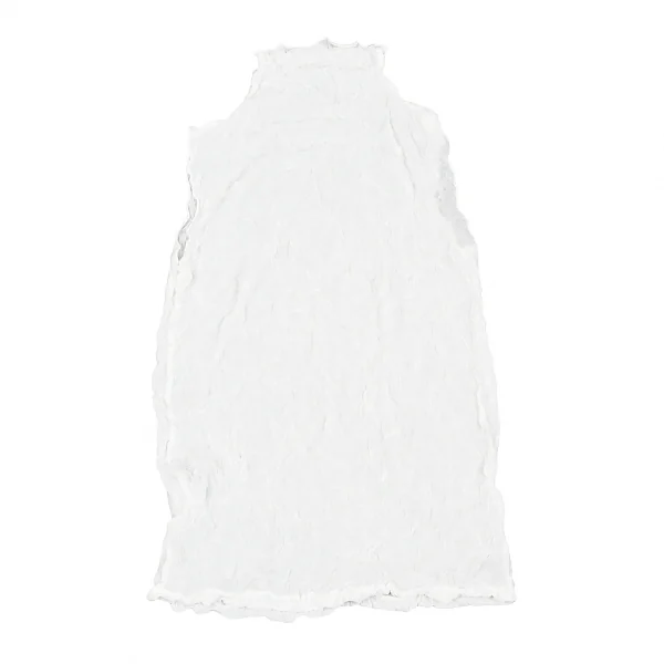 イッセイミヤケISSEY MIYAKEシワ加工ハイネックノースリーブ 白M