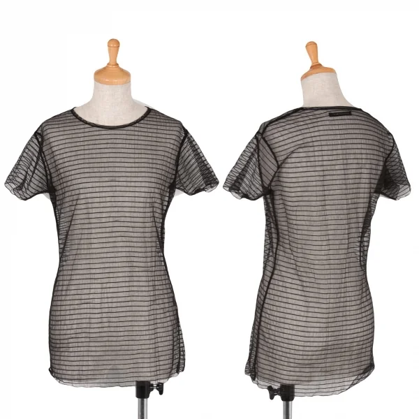 【SALE】ヨウジヤマモト ファムYohji Yamamoto FEMME シースルーボーダーカットソー 黒M位
