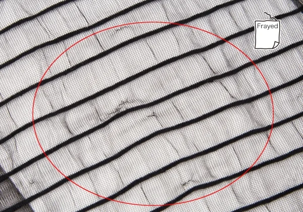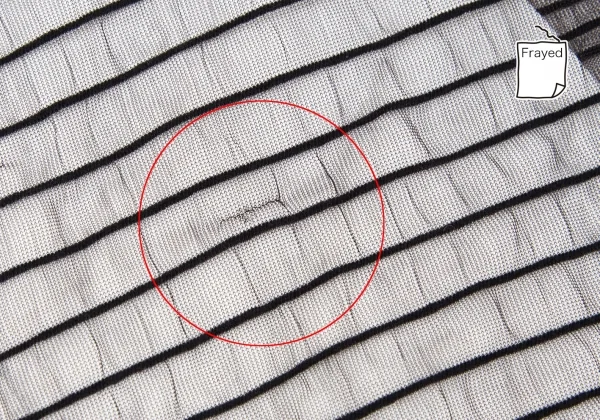 品質タグありません。引っ掛け多数あり(写真参照)。その他に目立ったシミ、汚れ等はなくいい状態です。クリーニング済み