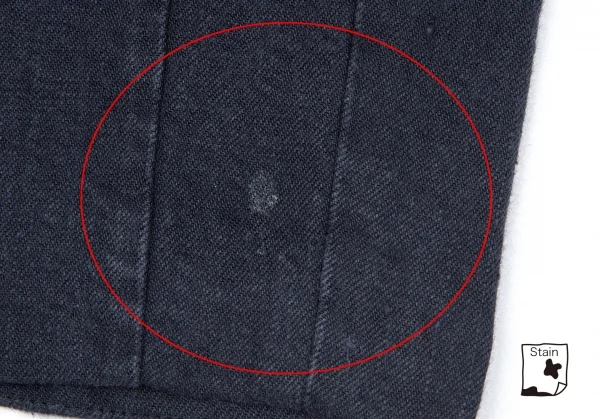 ジャケット袖口に色あせ、パンツ裾に汚れが有ります(写真参照)。クリーニング済み