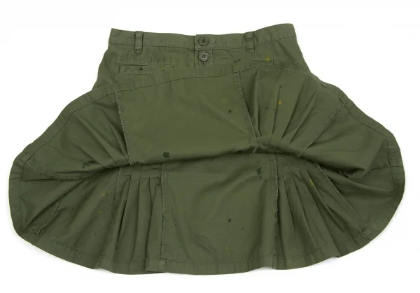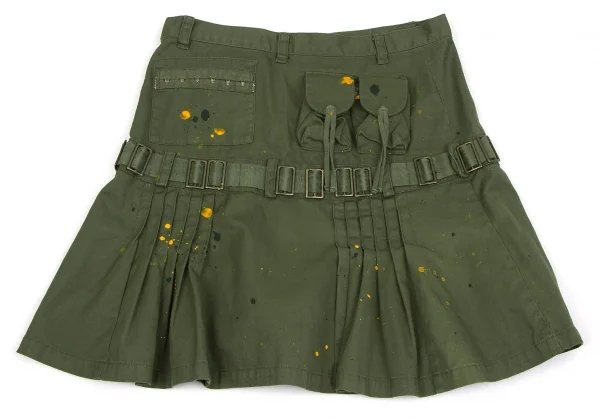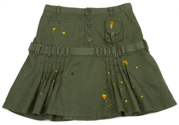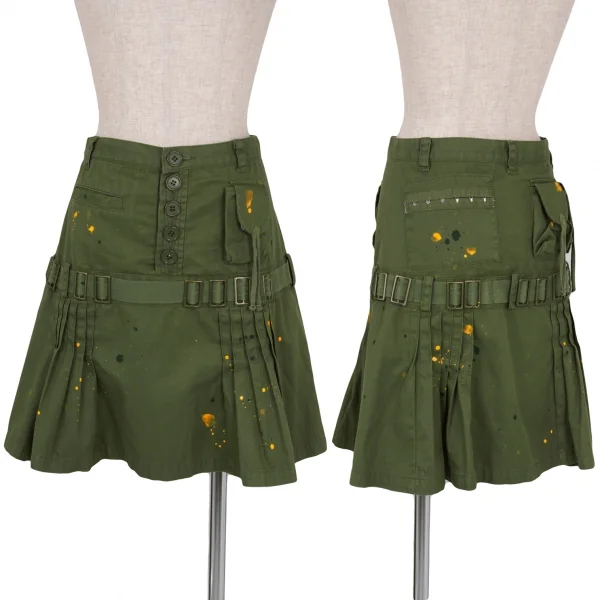 【SALE】スナオクワハラsunaokuwahara ペイントミリタリーデザインスカート カーキM