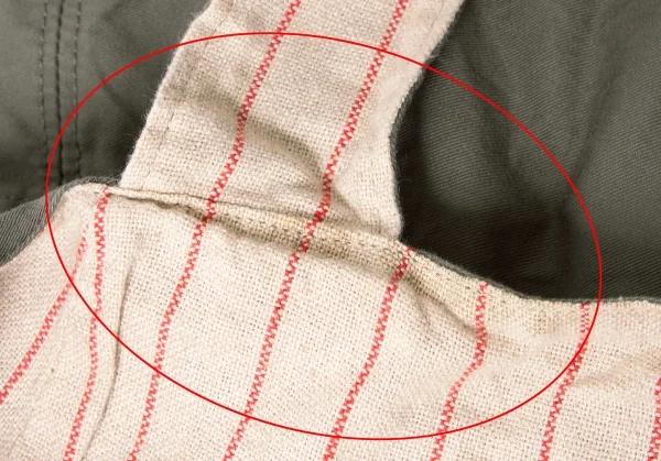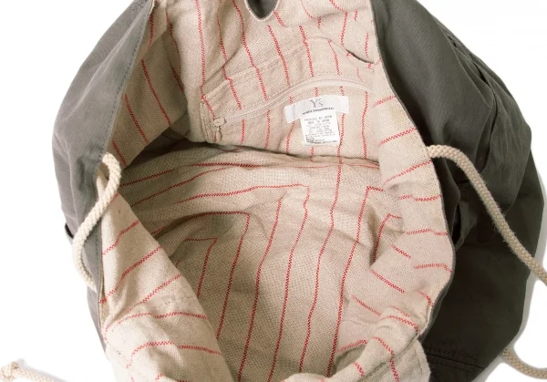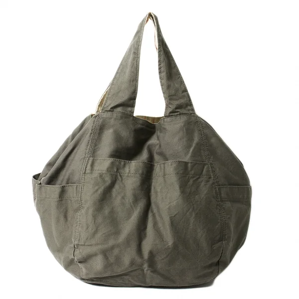ワイズY’s 裏地リネンストライプポケットデザイントートバッグ カーキ