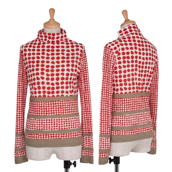 ヒロココシノ トランク HIROKO KOSHINO TRUNK ネットドットプリントカットソー 白赤ベージュ38