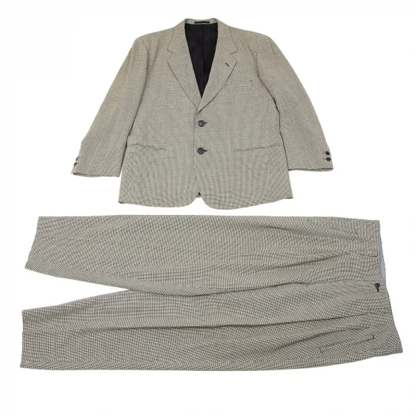 イッセイミヤケ メンISSEY MIYAKE MEN ウール千鳥セットアップスーツ 生成り黒M/L