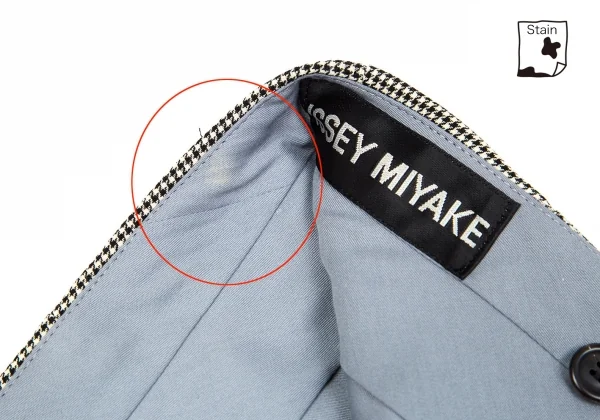 ジャケット裏地に穴、パンツにしみが有ります(写真参照)。クリーニング済み