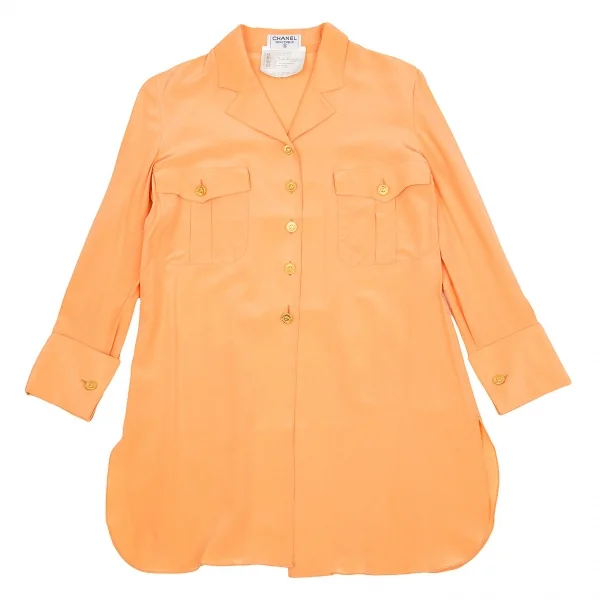 シャネルCHANEL シルクミリタリーシャツ オレンジ36