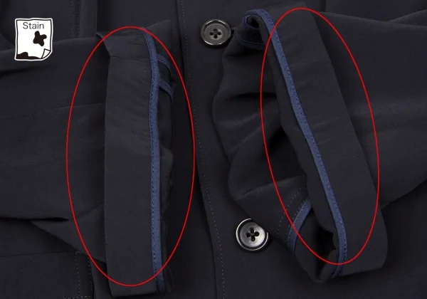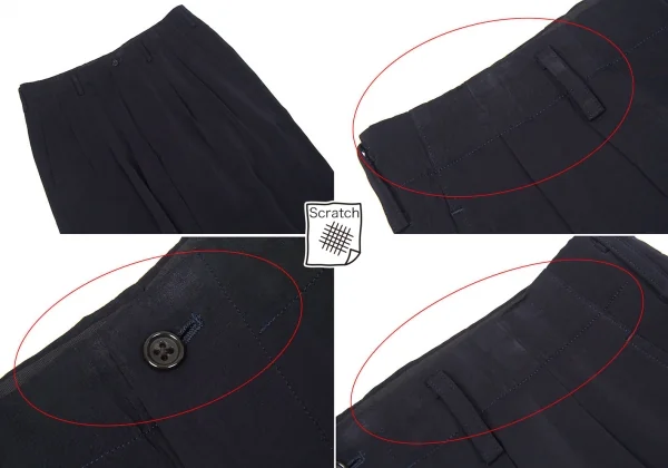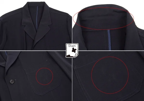 ジャケット 襟裏、ポケット、左袖、袖裏に薄汚れあり。パンツ ウエスト周り、ヒップに擦れテカりあり。(写真参照)その他に目立ったシミ、汚れ、ほつれ等なくいい状態です。クリーニング済み