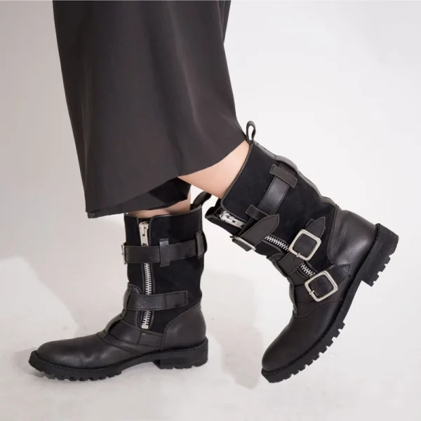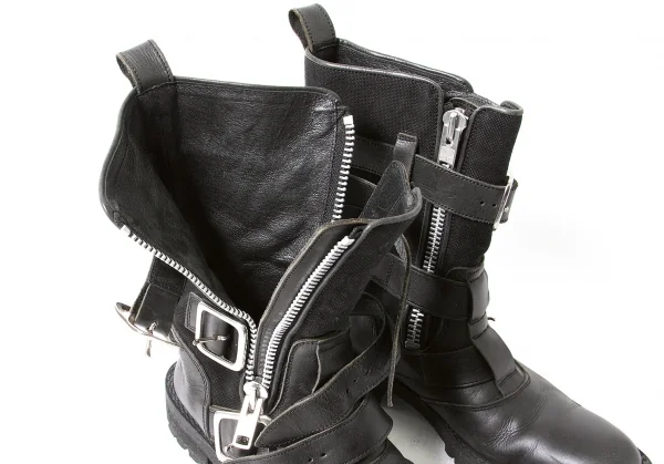 【最終値下げ】リミフゥLIMI feu キャンバス切替ショートレザーブーツ 黒M(24.0位)
