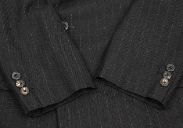 ヨウジヤマモトコスチュームドオムYohji Yamamoto COTUME D'HOMME ウールストライプピークドラペルダブルジャケットセットアップスーツ チャコールS