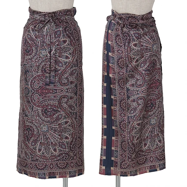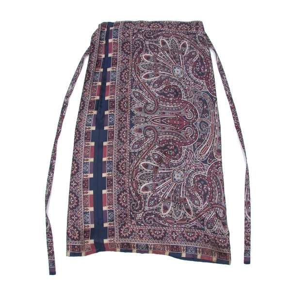 ローブデシャンブレ コムデギャルソンrobe de chambre COMME des GARCONS シルクペイズリー柄ラップスカート 紺紫他M位