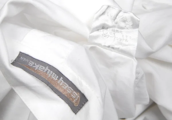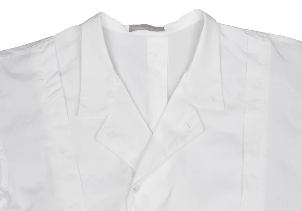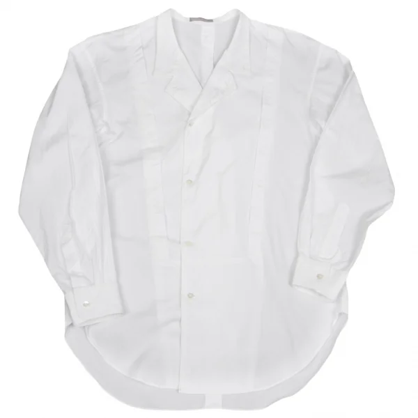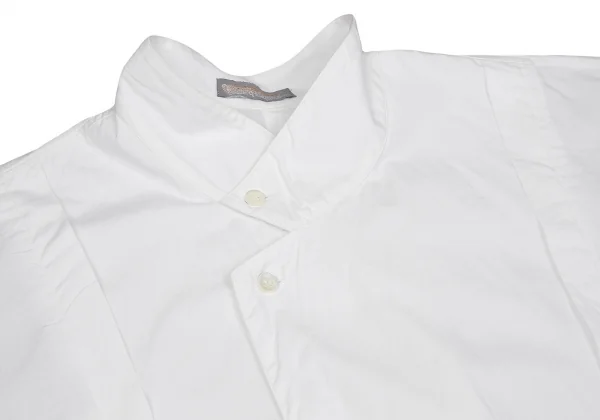 イッセイミヤケ メンISSEY MIYAKEMEN コットンプリーツ切替デザインスタンドカラーシャツ 白M