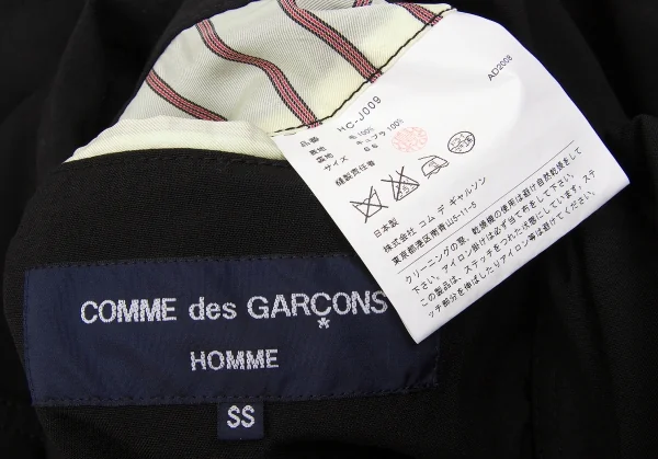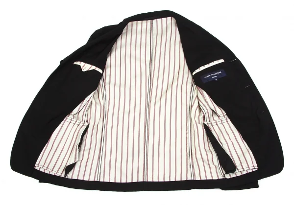 【SALE】コムデギャルソン オムCOMME des GARCONS HOMME ウール裏ストライプノッチドラペルパッカリングジャケット 黒SS