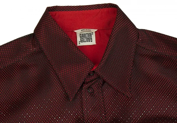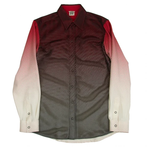 【SALE】ゴルチエトゥーザパワーオブトゥーGAULTIER2 メッシュレイヤードグラデーションドットプリントシャツ 黒赤白38