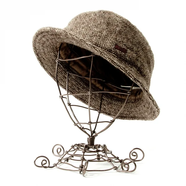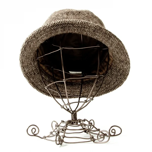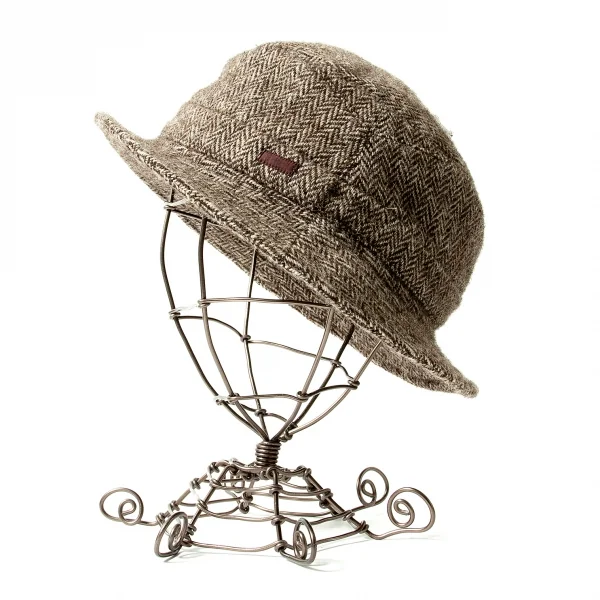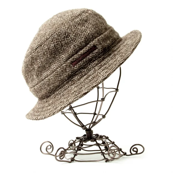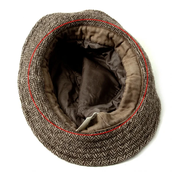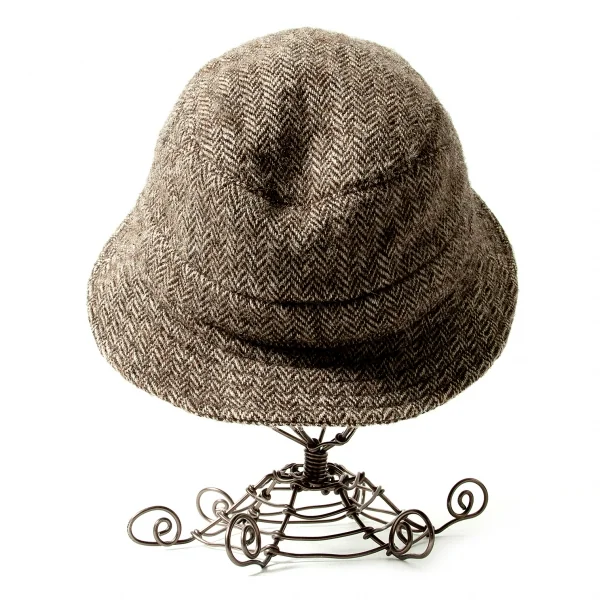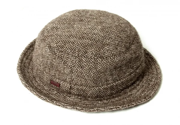 パパスPapas ヘリンボーンツイードハット 茶オフ