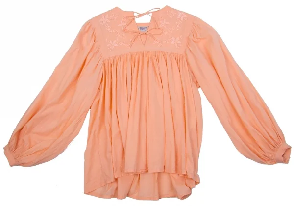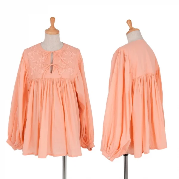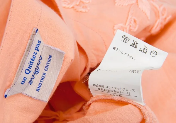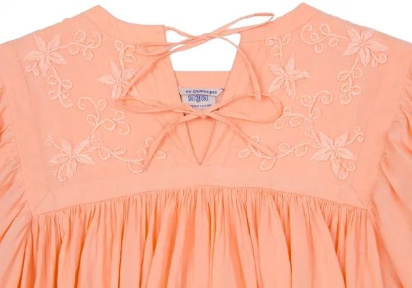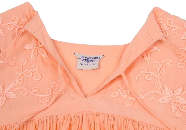 ヌキテパNE QUITTEZ PAS コットンフラワー刺繍デザインチュニック サーモンピンクM位
