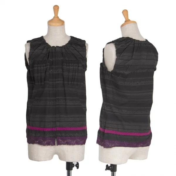 【SALE】ジャンポールゴルチエ ファムJean Paul GAULTIER FEMME レース装飾ギャザーデザインノースリーブトップス 黒グレー40
