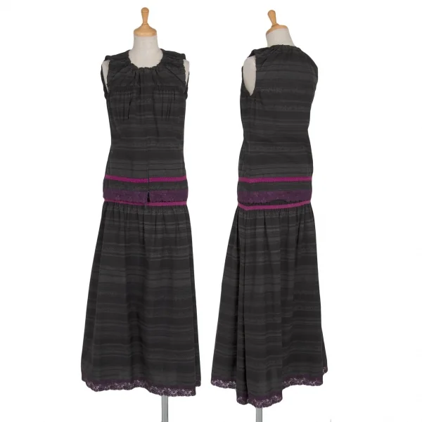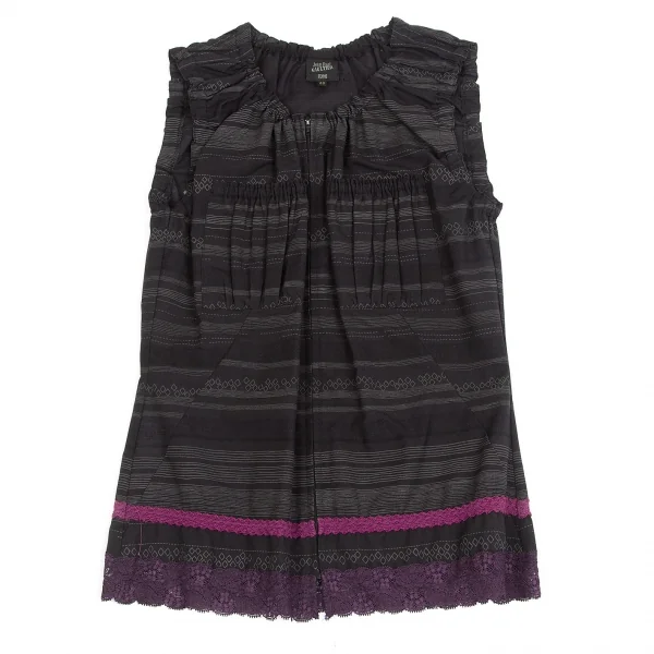 【SALE】ジャンポールゴルチエ ファムJean Paul GAULTIER FEMME レース装飾ギャザーデザインノースリーブトップスセットアップ 黒グレー40