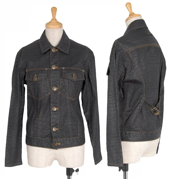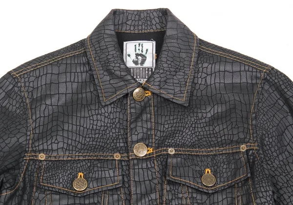 【SALE】ゴルチエジーンズGAULTIER JEAN'S クロコプリントトラッカージャケット 黒グレー40