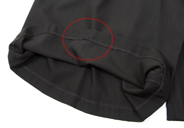 前身頃部分に小穴・引っ掛け、シミがあります(画像参照)。後ろ裾裏のロックがほつれています。クリーニング済み