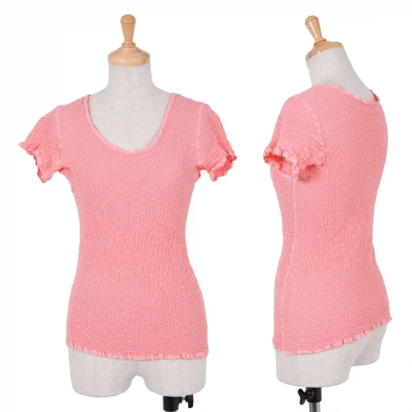 イッセイミヤケ ミーISSEY MIYAKE me シワ加工Tシャツ ピンクM位