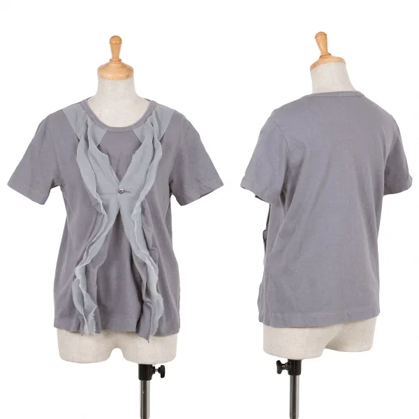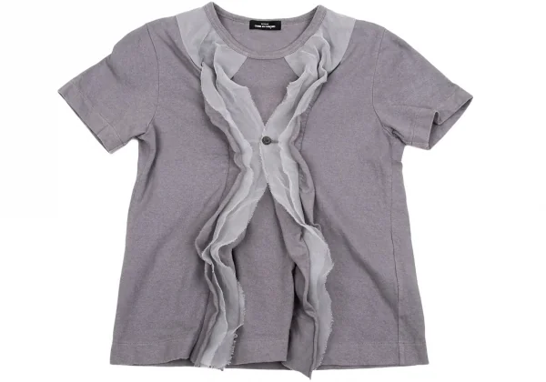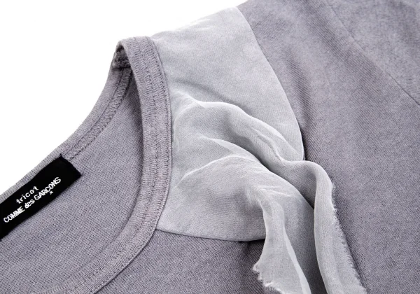 【最終値下げ】トリコ コムデギャルソンtricot COMME des GARCONS 製品染めシフォン切替デザイン半袖カットソー グレーM位
