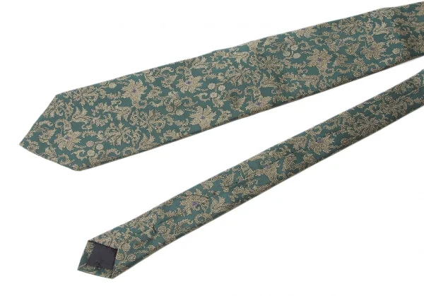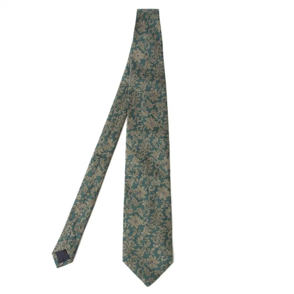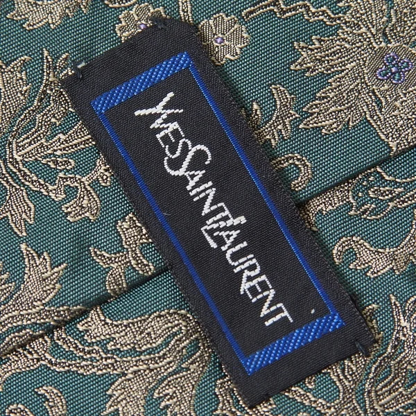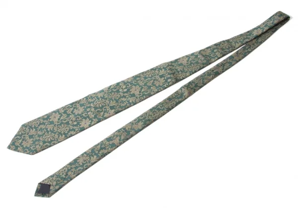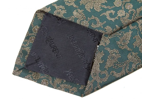 【SALE】イヴサンローランYves Saint Laurent シルクフラワージャガードネクタイ 緑ベージュ